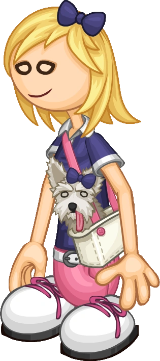 - In Papa Louie 2, you can see Pickle (Prudence's dog) in her bag if you look closely.