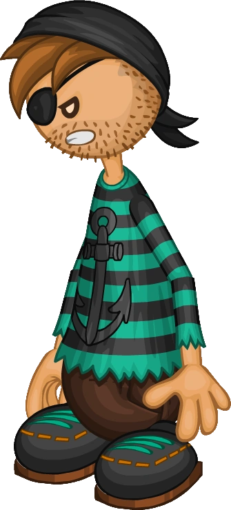 Robby once lived in the apartments above Papa's Pizzeria. Having spent all his rent money on pizzas, Robby desperately needed a job. He soon found an opening as a deckhand aboard a small shrimp boat for the summer. The voyage went awry when a rogue wave capsized the boat and sent him drifting to an uncharted island. After 3 lonely years, he was spotted and rescued by Captain Cori.
